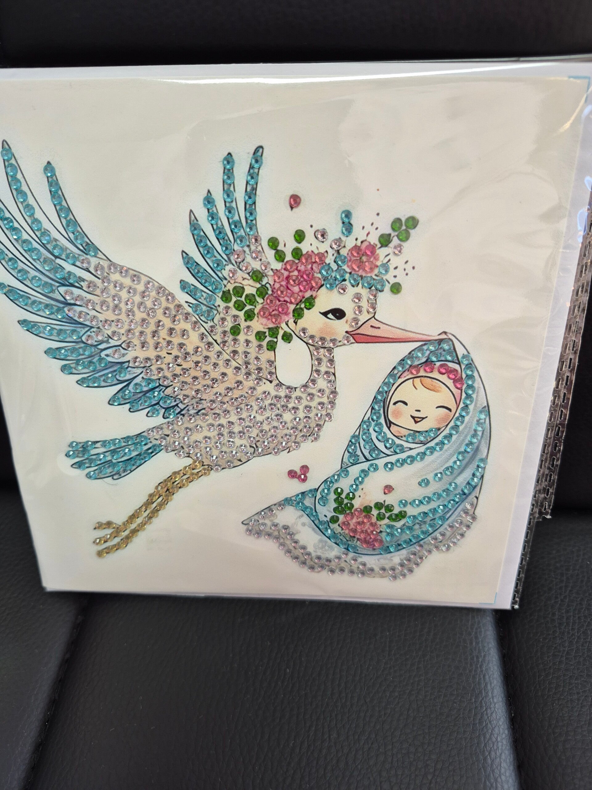 Grußkarte mit Diamond Painting zur Geburt . Mit passendem Kuvert.