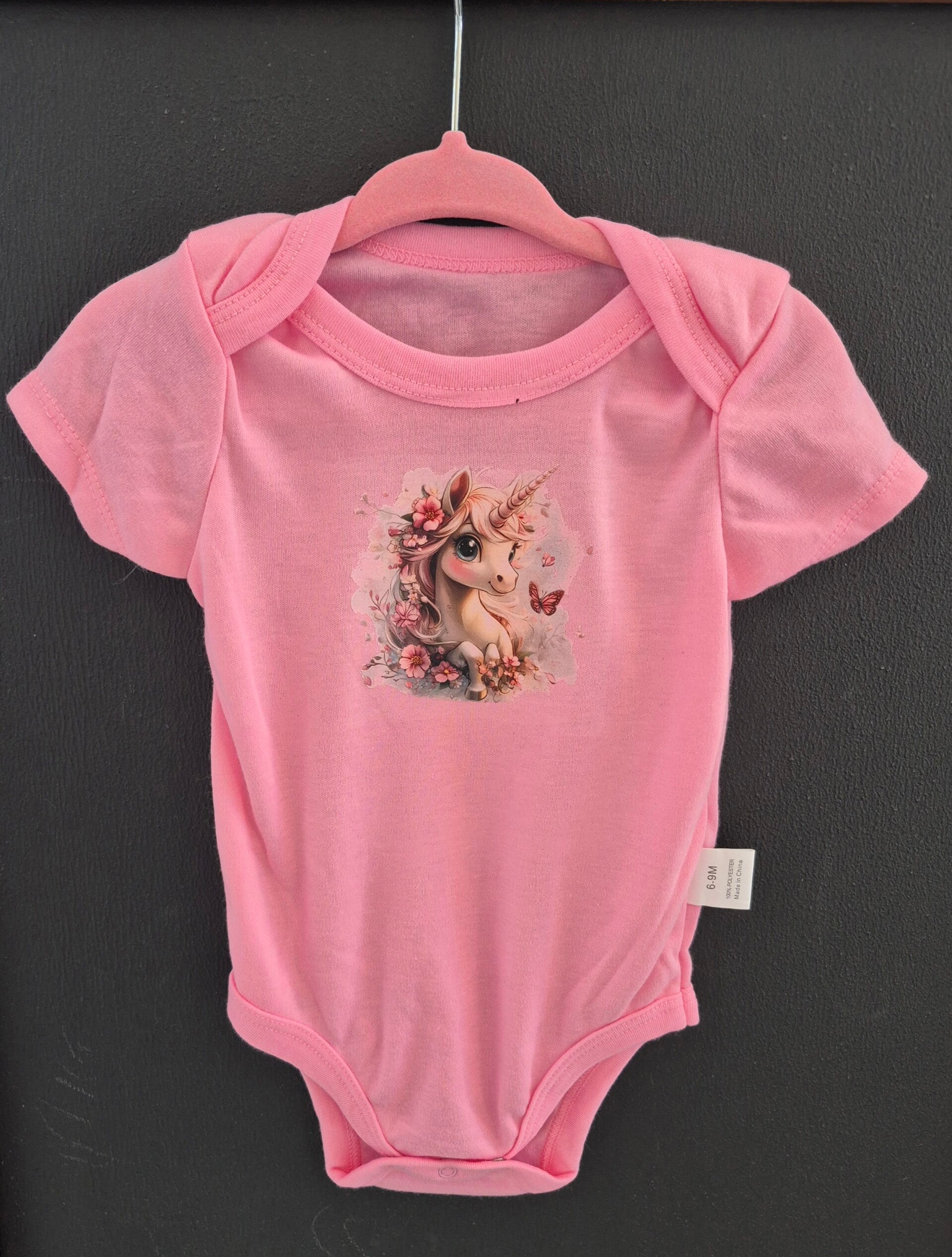 Pinker Babybody, 100% Baumwolle, mit Einhorn.